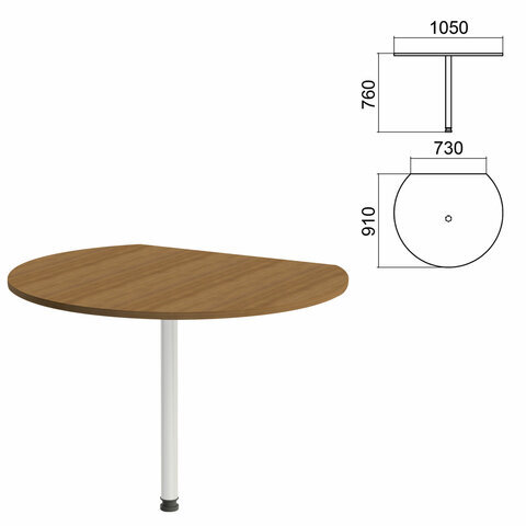 Стол приставной полукруг "Арго", 1050х910х760 мм, орех/опора хром (КОМПЛЕКТ)