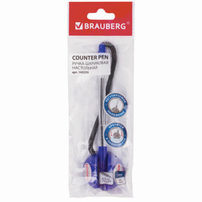 Ручка шариковая настольная BRAUBERG "Counter Pen", СИНЯЯ, пружинка, корпус синий, 0,5 мм, 143259