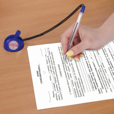 Настольная шариковая ручка BRAUBERG "Counter Pen" со стандартным типом пишущего узла и заменяемым стержнем. Специальная подставка с липким основанием обеспечивает надежное крепление на столе.