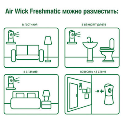 Сменный баллон AIRWICK предназначен для ароматизации воздуха и удаления неприятных запахов в помещениях (офисе, ресторане, туалете, помещении для курения). Содержит натуральные масла и экстракты водных растений.