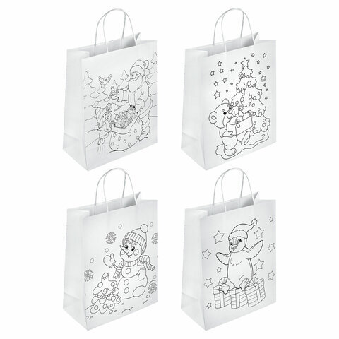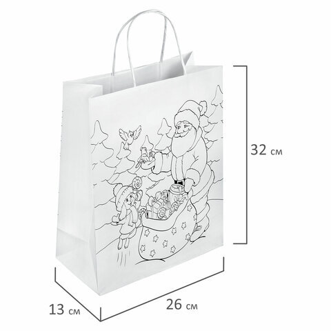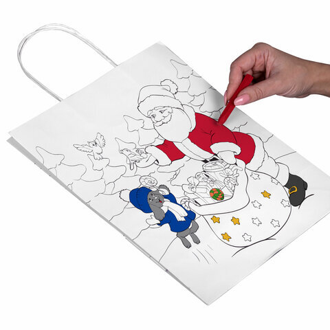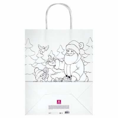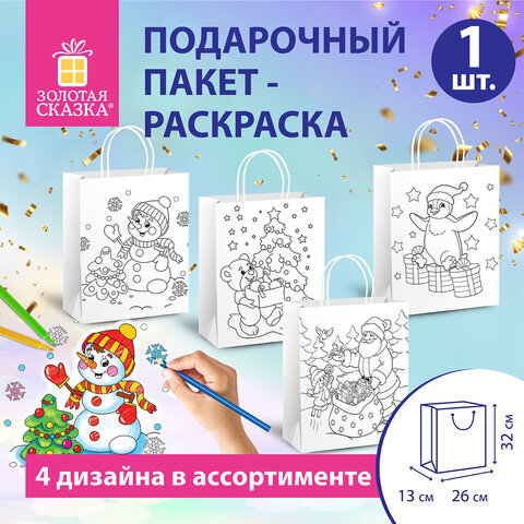 Пакет-раскраска подарочный (1 штука) новогодний 26x13x32 см, белый крафт, ассорти, ЗОЛОТАЯ СКАЗКА, 591974