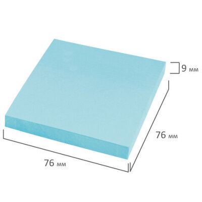 Блок самоклеящийся (стикеры) STAFF STANDARD, ПАСТЕЛЬНЫЙ 76х76 мм, голубой, 100 листов, 116574
