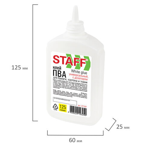 Клей ПВА STAFF EVERYDAY, 125 г, с дозатором, 227387