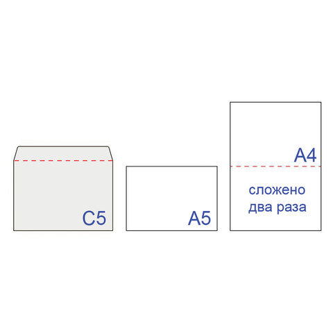 Конверт почтовый формата С5 предназначен для рассылки писем, открыток, документов формата А5 или А4 в сложенном виде.