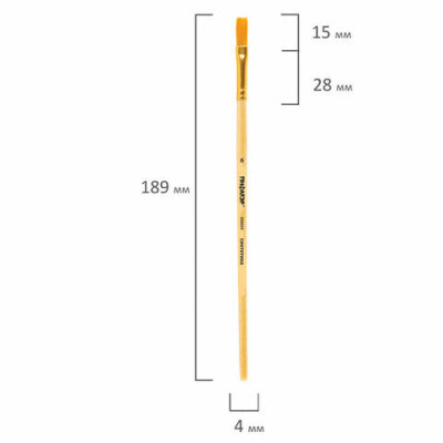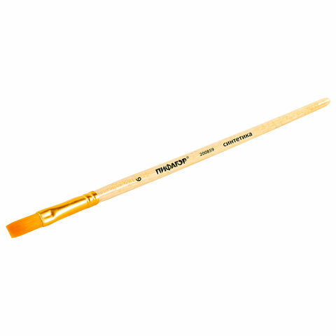 Кисть ПИФАГОР, СИНТЕТИКА, плоская, № 6, деревянная лакированная ручка, с колпачком, пакет с подвесом, 200859