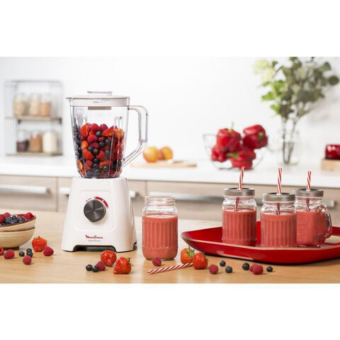 Блендер стационарный MOULINEX LM420110, 600 Вт, 2 скорости, чаша 2 л, пластик, белый, 7211003001