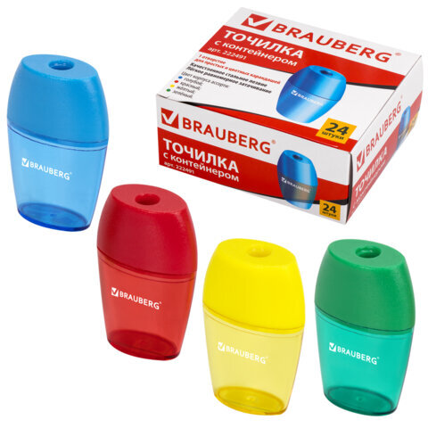 Точилка BRAUBERG "Diamond", с контейнером, овальная, в дисплее, ассорти, 222491