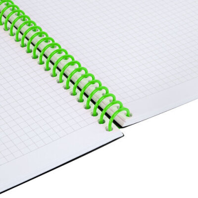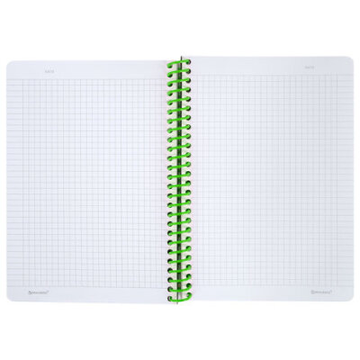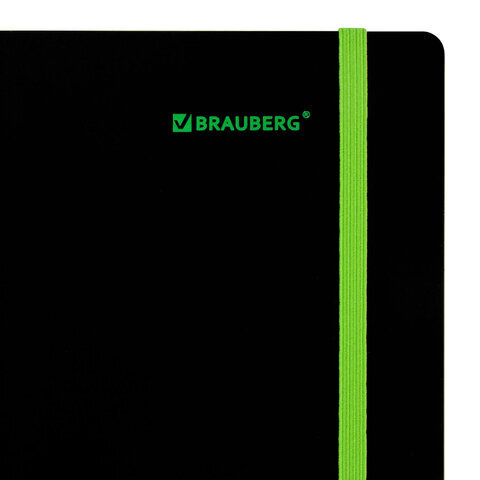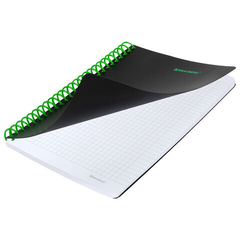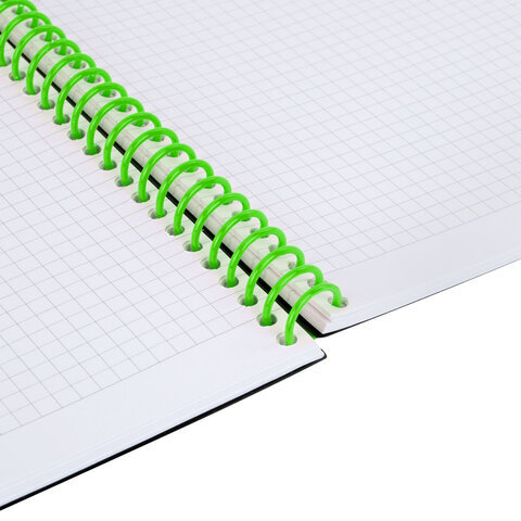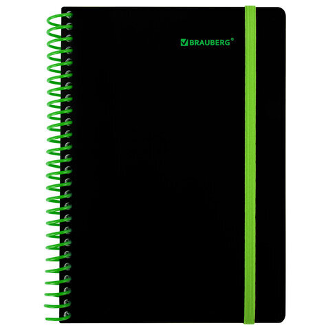 Тетрадь обложка пластик, А5 80 л., спираль пластик, резинка, клетка, BRAUBERG, черный/зеленый, 405387