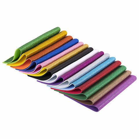 Пористая резина/фоамиран А4, 2 мм, НАБОР, 15 листов, 15 цветов, яркие цвета, блестки, ОСТРОВ СОКРОВИЩ, 665102