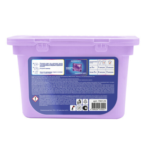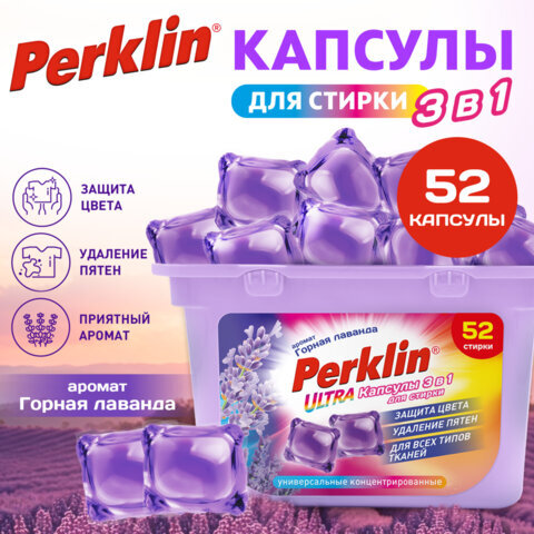 Капсулы для стирки белья PERKLIN (ПЕРКЛИН) "ГОРНАЯ ЛАВАНДА" концентрат 3 в 1 с кондиционером 52 шт., 700129