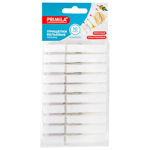 Прищепки бельевые 7,8 см, КОМПЛЕКТ 10 штук, пластик, белые, PRIMILA (ПРИМИЛА) ORIGINAL, 700512