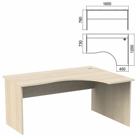 Стол эргономичный "Арго", 1600х1200х760 мм, правый, ясень шимо (КОМПЛЕКТ)