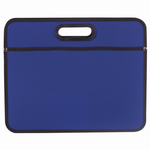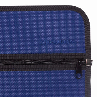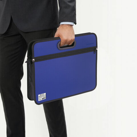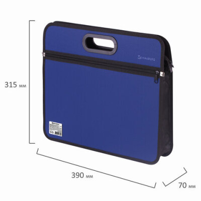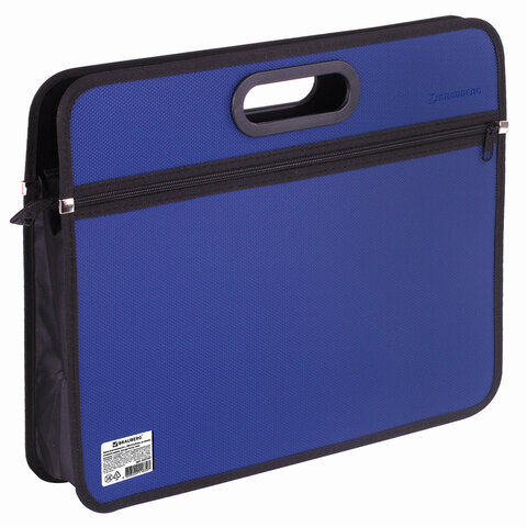 Сумка пластиковая BRAUBERG, А4+, 390х315х70 мм, на молнии, внешний карман, фактура бисер, синяя, 225167