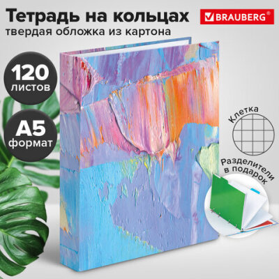 Тетрадь на кольцах А5 (175х215 мм), 120 листов, твердый картон, клетка, с разделителями, BRAUBERG, Blur, 404087