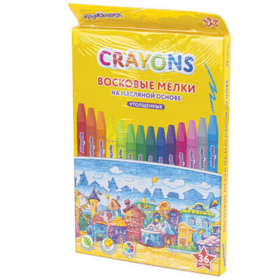 Восковые мелки утолщенные на масляной основе ЮНЛАНДИЯ "ДОМИКИ", 36 цветов, 273092
