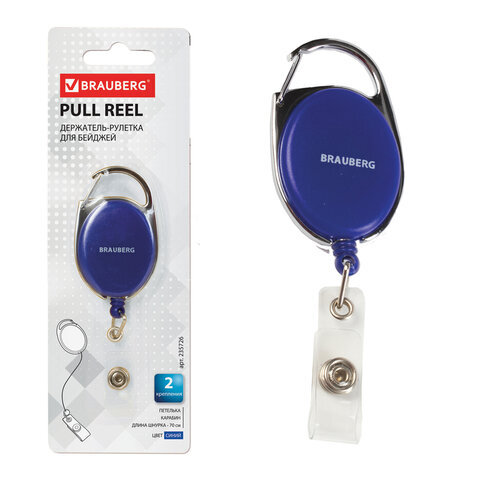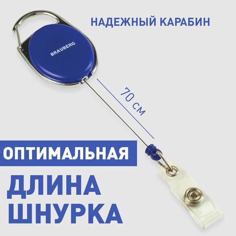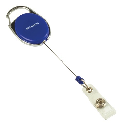 Держатель-рулетка для бейджей, 70 см, петелька, карабин, синий, в блистере, BRAUBERG, 235726