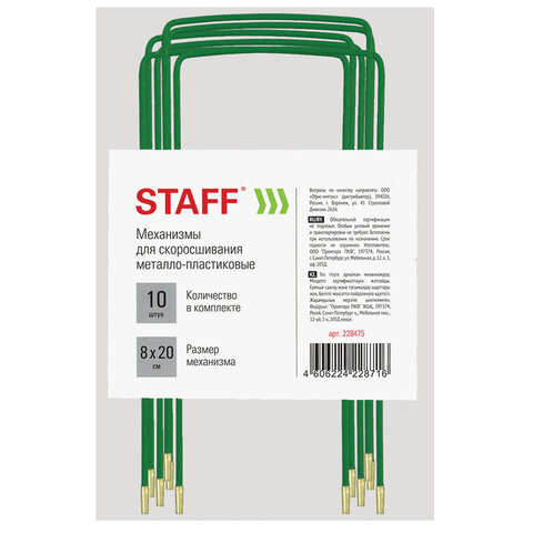 Механизмы для скоросшивания STAFF предназначены для легкого и быстрого сшивания документов и перемещения их в архивные короба.