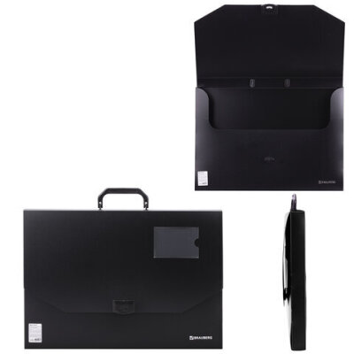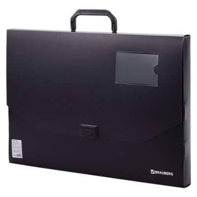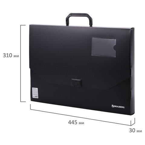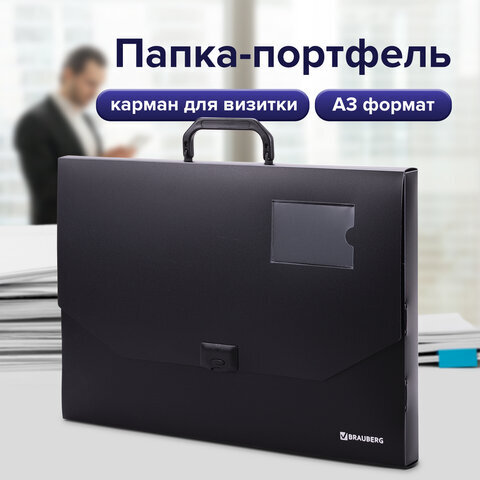 Папка-портфель пластиковая БОЛЬШОГО ФОРМАТА BRAUBERG "ПОРТФОЛИО", А3 (445х310х30 мм), черная, РОССИЯ, 226023