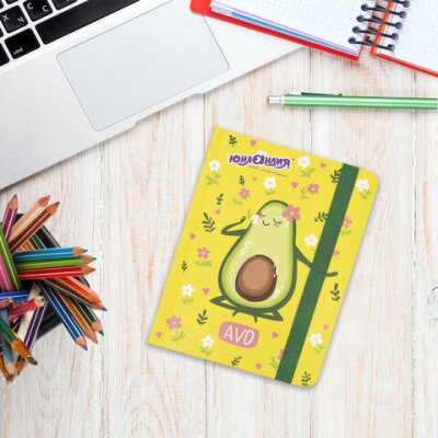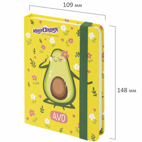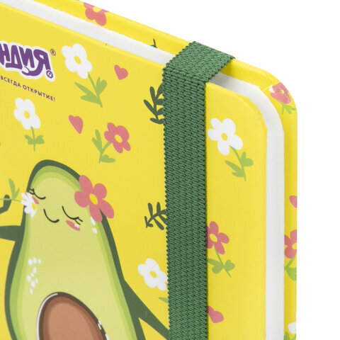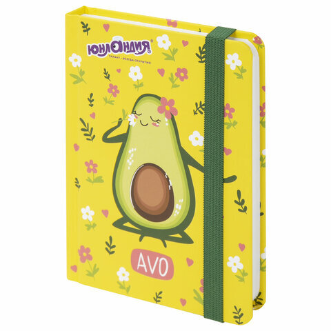 Блокнот с резинкой в клетку 96 л., МАЛЫЙ ФОРМАТ А6 (109х148 мм), твердая обложка, ЮНЛАНДИЯ, "Авокадо", 113745