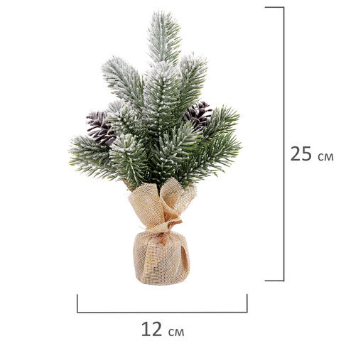 Ель новогодняя искусственная настольная 25 см, заснеженная, с шишками, литой ПЭТ, ЗОЛОТАЯ СКАЗКА, 592010