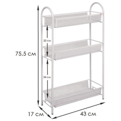 Этажерка "Ладья-13" офисно-бытовая 3 яруса, металл, белая, 43х17х75,5 см, Э 399 Б
