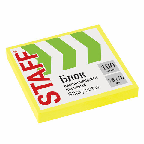 Блок самоклеящийся (стикеры), STAFF НЕОНОВЫЙ, 76х76 мм, 100 листов, желтый, 115584