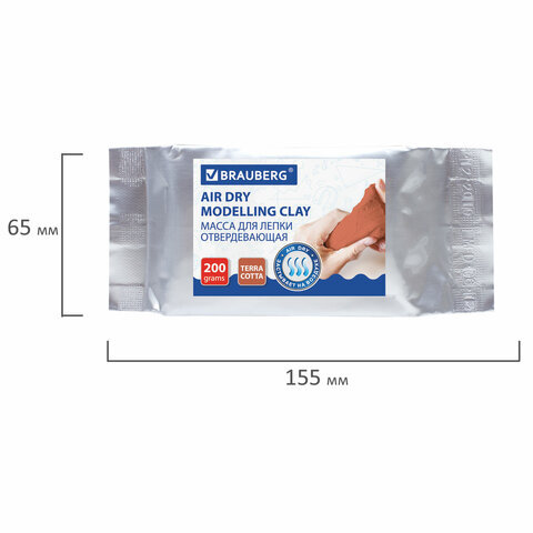 Паста (масса) для моделирования и лепки BRAUBERG, самозатвердевающая, 200 г, терракотовая, ВЫСШЕЕ КАЧЕСТВО, 224442