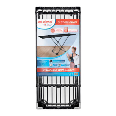 Напольная сушилка для белья LAIMA HOME подходит для использования в любых помещениях. Сушилка имеет удобную складную конструкцию и антикоррозионное покрытие.