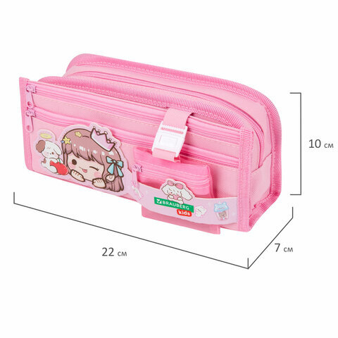 Пенал мягкий BRAUBERG KIDS, 3 отделения, кармашек на карабине, полиэстер, "Sweet friends", 22х10х7 см, 273558