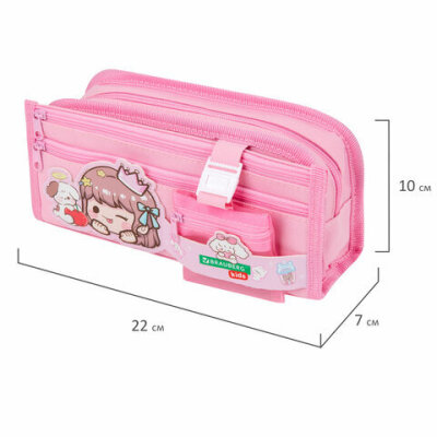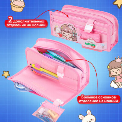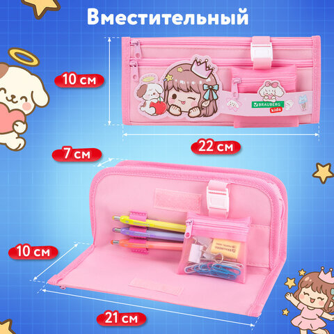 Пенал-косметичка BRAUBERG KIDS "Sweet friends" предназначен для хранения школьных принадлежностей, вмещает до 75 канцелярских предметов стандартного размера.
