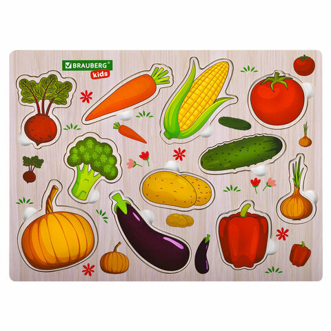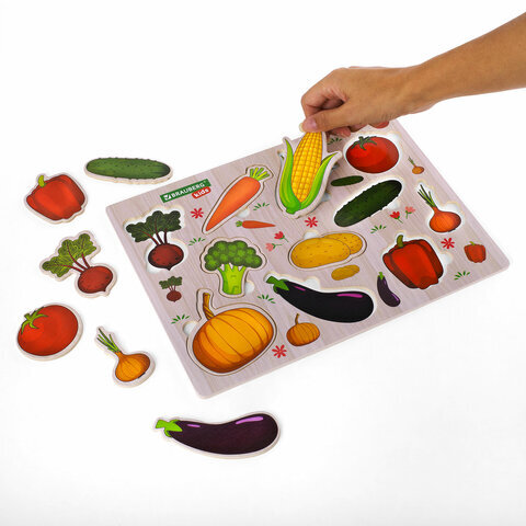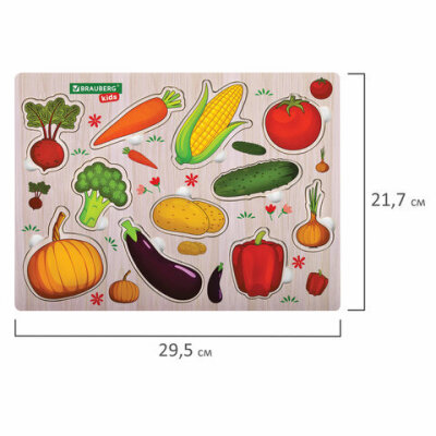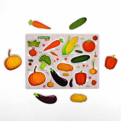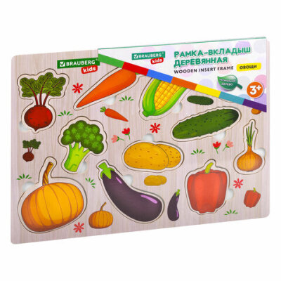 Рамка-вкладыш деревянная развивающая "Овощи", 22х30 см, BRAUBERG KIDS, 665255