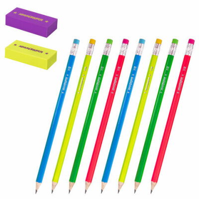 Набор ЮНЛАНДИЯ "НЕОНЧИКИ" состоит из 8 чернографитных карандашей и двух мягких ластиков. Карандаши позволяют сделать легкий набросок или нарисовать полноценную картину. Ластики обеспечивают лёгкое и чистое стирание без повреждения бумаги.