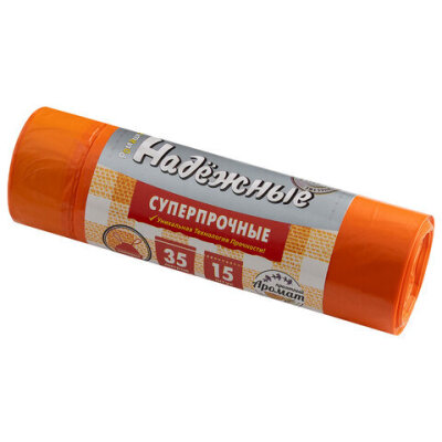 Мешки для мусора с завязками 35 л., оранжевые, в рулоне 15 шт., ПСД 18 мкм, 50х53 см, РОМАШКА НАДЕЖНЫЕ, ВЗ0351516О