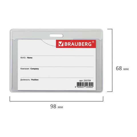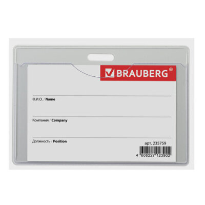 Горизонтальный бейдж BRAUBERG для именной карточки предназначен для идентификации сотрудников в компаниях, а также на семинарах, тренингах, презентациях и других мероприятиях.
