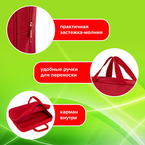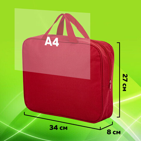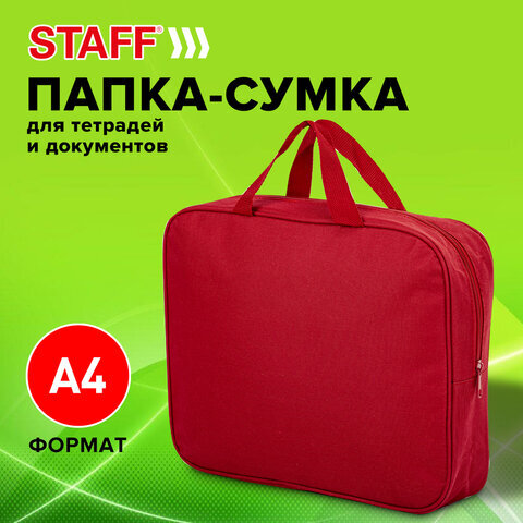 Папка на молнии с ручками STAFF EVERYDAY А4, 1 отделение, полиэстер, 80 мм, красная, 270739