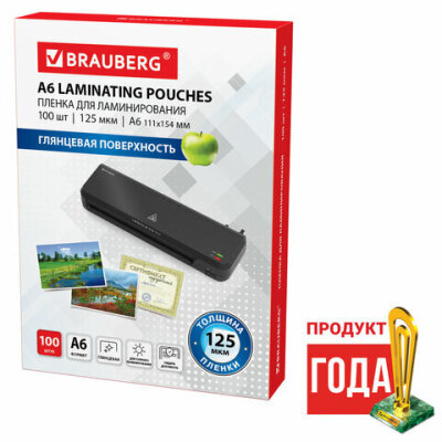 Пленки-заготовки для ламинирования МАЛОГО ФОРМАТА, А6, КОМПЛЕКТ 100 шт., 125 мкм, BRAUBERG, 530806