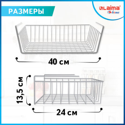 Корзина подвесная (органайзер) металлическая, для шкафов и полок, 40х24х13,5 см, LAIMA HOME 607999