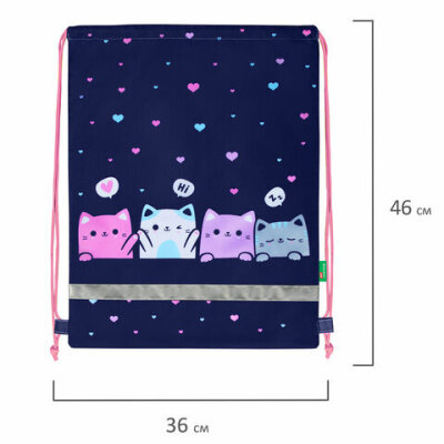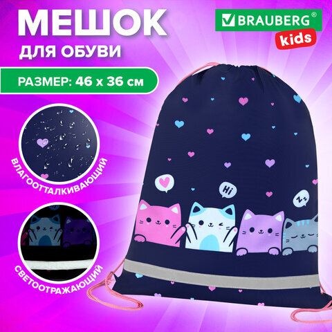 Мешок для обуви BRAUBERG KIDS, светоотражающая полоса, 46х36 см, "Anti-gravity", 273437