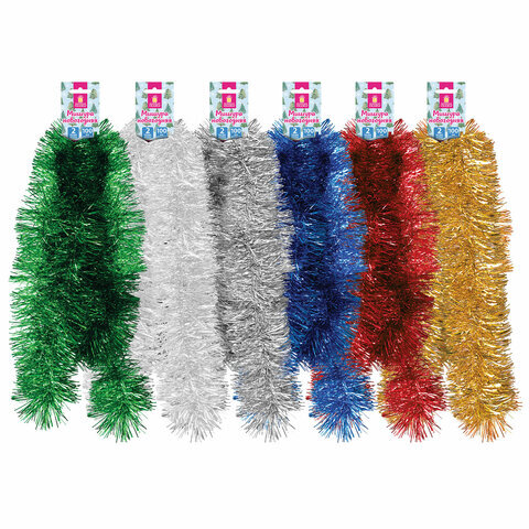 Мишура (1 штука), диаметр 100 мм, длина 2 м, ассорти 6 цветов, ЗОЛОТАЯ СКАЗКА, 592213