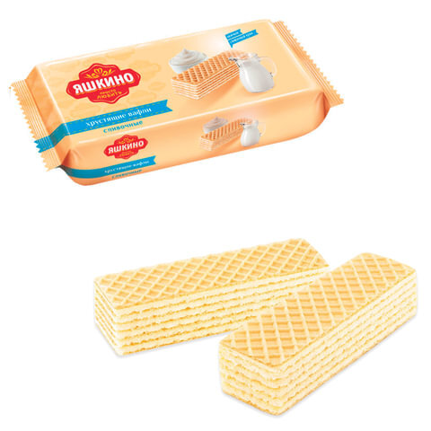 Вафли ЯШКИНО "Сливочные" - семислойные вафли с пломбирно-сливочной начинкой.
