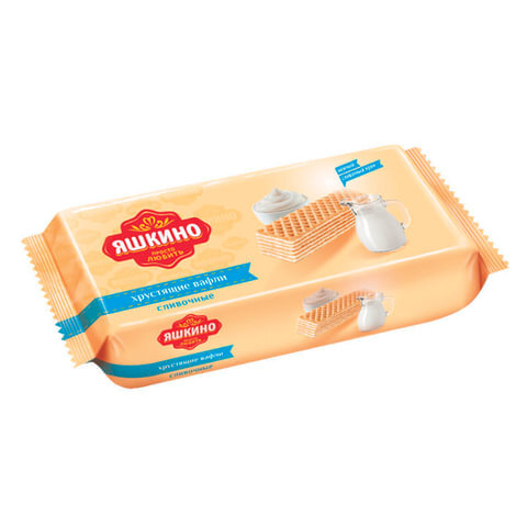 Вафли ЯШКИНО "Сливочные" с пломбирно-сливочной начинкой, 300 г, ЯВ166