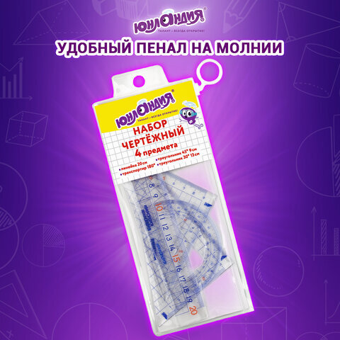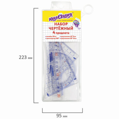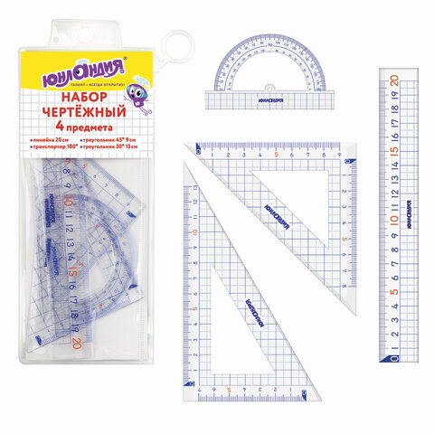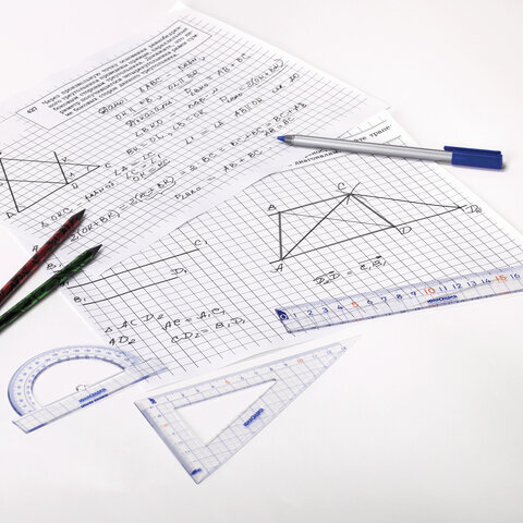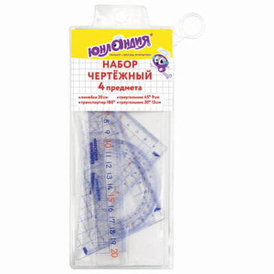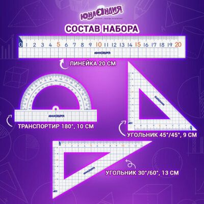 | Комплектация | большой треугольник, линейка, малый треугольник, транспортир |