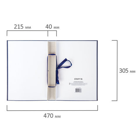 Папка-обложка для дипломного проекта STAFF, А4, 215х305 мм, фольга, 3 отверстия под дырокол, шнур, синяя, 127210