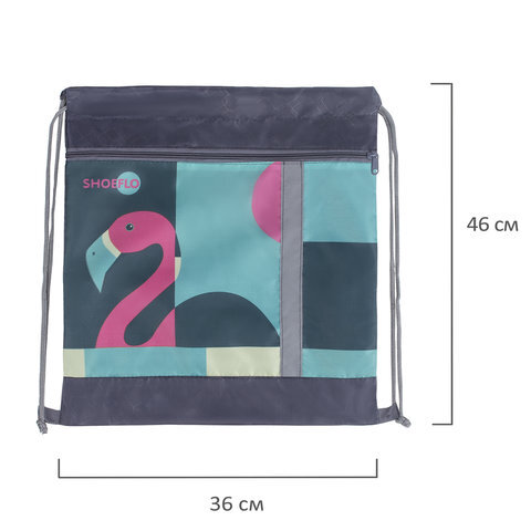 Мешок для обуви, карман на молнии, сетка для вентиляции, светоотражающий, "Фламинго", 46х36 см, СДС-711