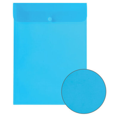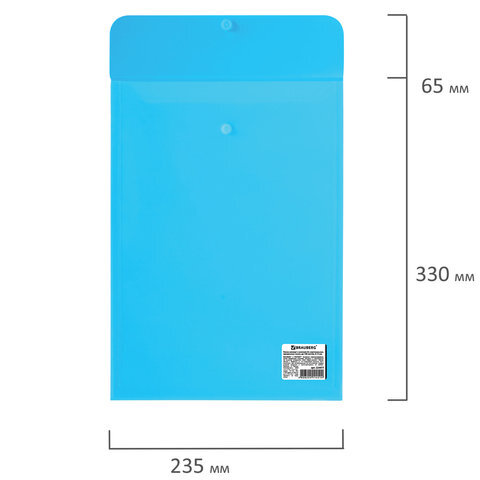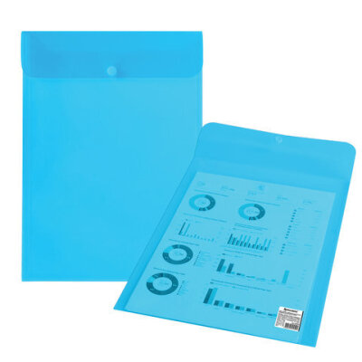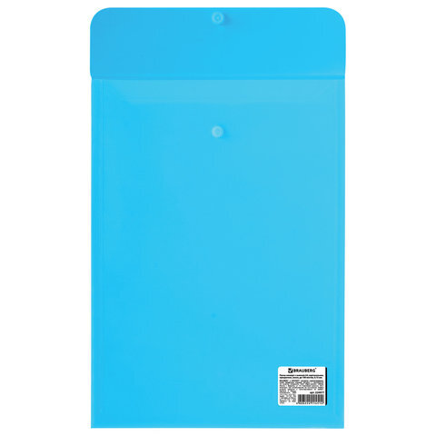Папка-конверт с кнопкой BRAUBERG, вертикальная, А4, до 100 листов, прозрачная, синяя, 0,15 мм, 224977