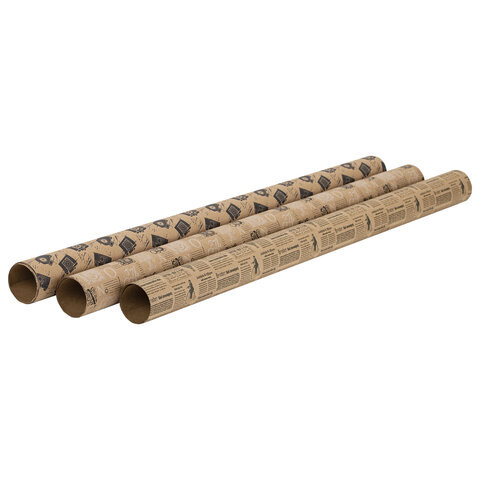 Бумага упаковочная крафтовая НАБОР 3 шт., "Kraft Casual", 70х100 см, 3 дизайна, ЗОЛОТАЯ СКАЗКА, 592063