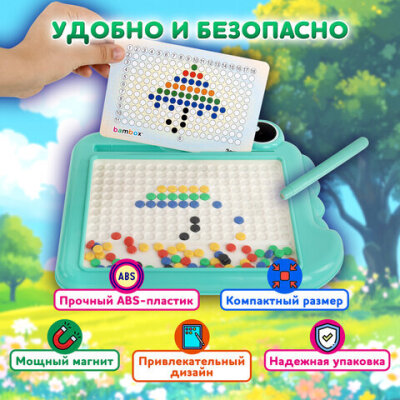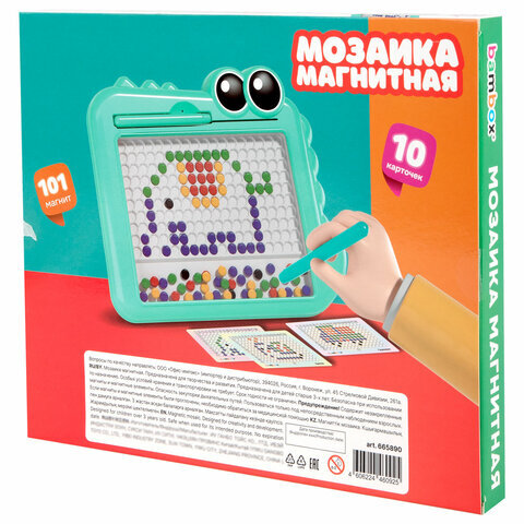 Мозаика магнитная развивающая для детей "Крокодил", стилус, 101 магнит, 10 карточек, BAMBOX (БАМБОКС), 665890