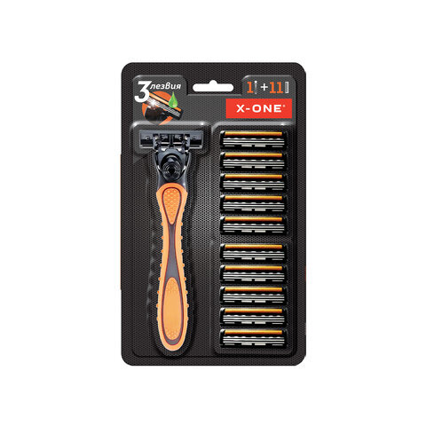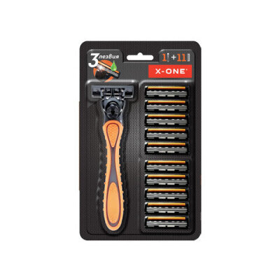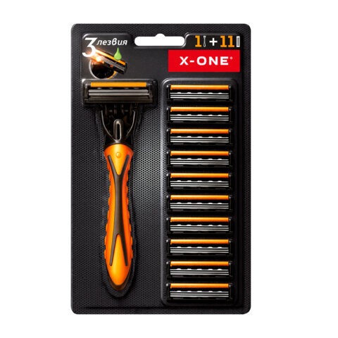 Бритвенный станок многоразовый мужcкой, 3 лезвия, 11 кассет, оранжевый, X-ONE (ИКС-УАН), 700023