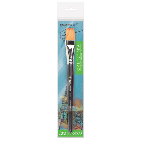Кисть художественная профессиональная BRAUBERG ART CLASSIC, синтетика мягкая под колонок, плоская, № 22, короткая ручка, 200706