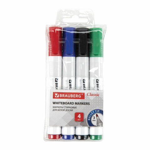 • Набор маркеров BRAUBERG "CLASSIC" предназначен для использования на белых досках с магнитно-маркерной поверхностью. Идеально подходит для проведения презентаций, совещаний, уроков.